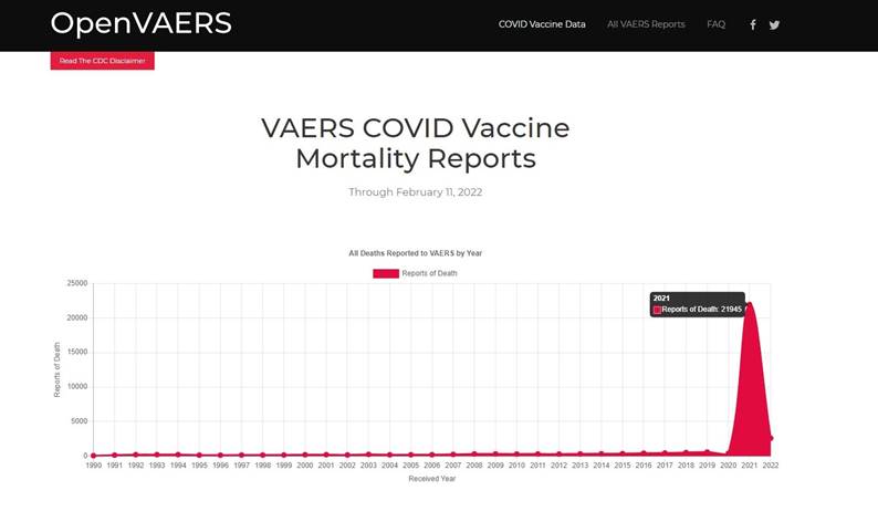和美國食品及藥物管理局的疫苗不良反應報告系統(VAERS)有近24,000宗與新型冠狀病毒信使核糖核酸疫苗相關的死亡報告。