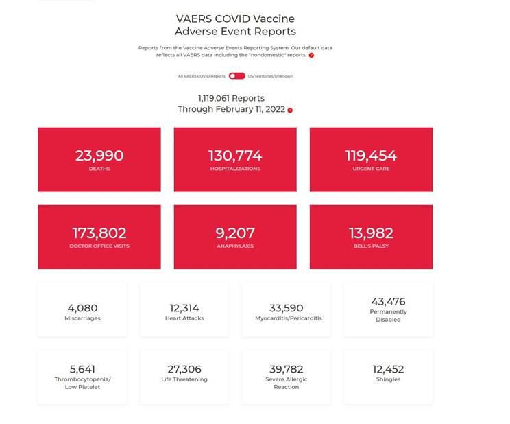 截至2月22日,VAERS已記錄
