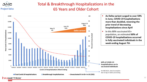 幻燈片12--見下文--解釋說,根據截至8月7日的最新可用資料,在65歲及以上年齡段的所有福奇流感住院病人中,至少有60%是「完全接種」的病人,這意味著他們注射了目前所有可用的疫苗。