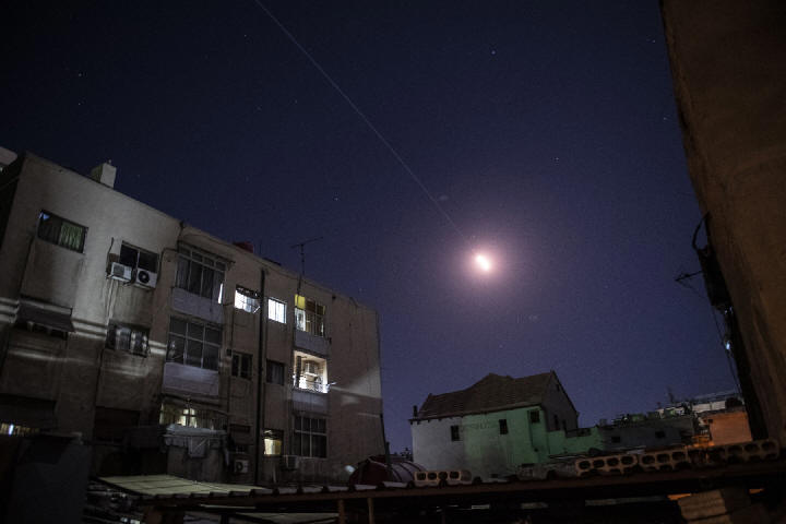 2023年4月4日,大馬士革上空出現敘利亞防空火箭彈。(STRINGER