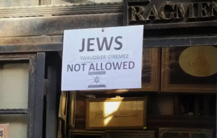在此之前,最近發生了另一個令人不安的事情,該事情顯示伊斯坦堡一家書店上掛著一個標語,上面寫著「猶太人不允許」。