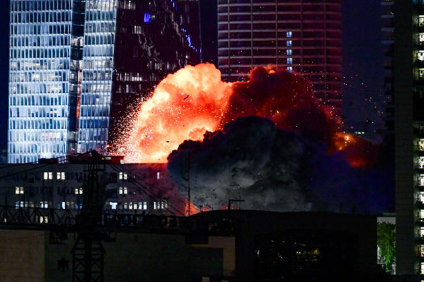 2025年6月22日,以色列安全和救援部隊抵達特拉維夫,伊朗發射的彈道導彈擊中該地並造成破壞。攝影:Chaim