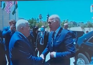 儘管對新型冠狀病毒感到擔憂,但拜登在伯利恆會面時確實與賓夕法尼亞州總統馬哈茂德·阿巴斯握手。