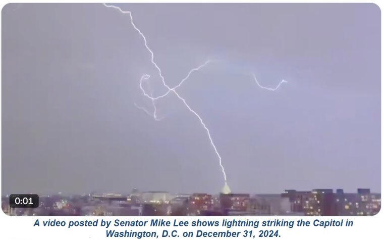 雖然高層建築被閃電擊中並不罕見,但這些打擊都發生在新年前夜,這真是太不尋常了,而當時我們的國家正準備進入一個可能影響深遠的年份。這只是巧合,還是改變即將發生的跡象?猶他州共和黨參議員邁克李在X上發布了國會大廈襲擊的視頻,並想知道這一驚人景像是否有更深層的含義。「感覺像是一個預兆。它告訴我們什麼?」他在影片旁邊寫道。(2)