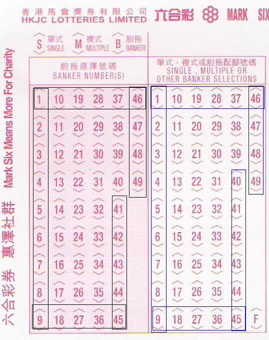 彩票的邊緣是最上列和最底列,最左和最右邊、凹角位)。在彩票中,四十九個號碼當中的一半是邊緣數。如此電腦票(隨機)之下,在預計上,攪出的六個號碼當中的三個會是彩票中的邊緣位置,並且很多中獎號碼應該有三個邊緣數。