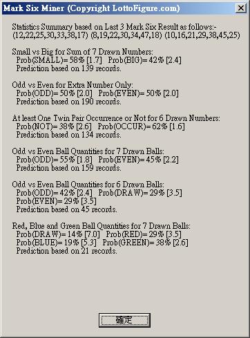 Balls:即是七個號碼的單雙波的數目;結果Prob(ODD)=55%;Prob(EVEN)=45%,意思是開出號碼主是要單波的機會率較大。Odd vs