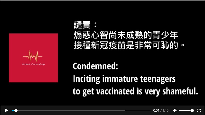 最令人感到不安的是,在該影片的說明中,還給出專業建議,暗示這些年滿14週歲的青少年有權向父母隱瞞自己的疫苗接種狀況。
