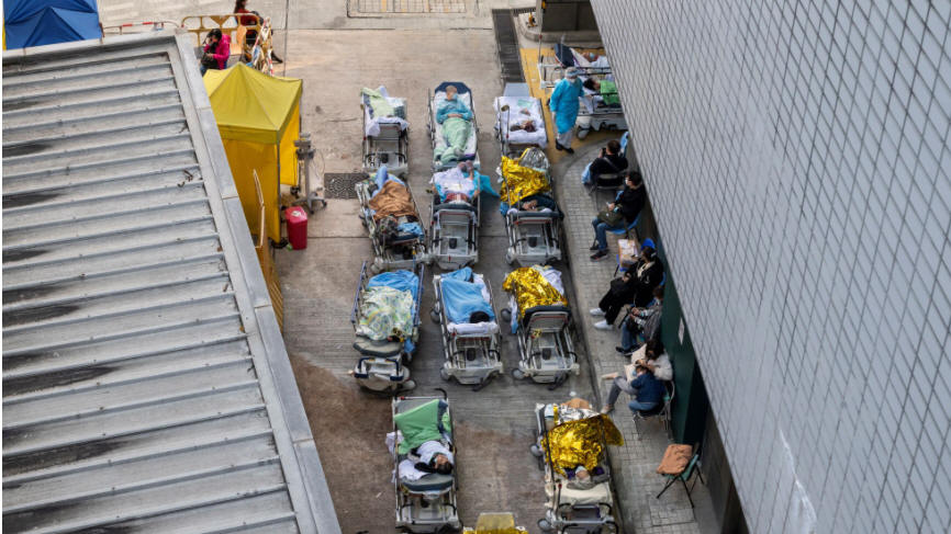 醫院管理局警告說,病房的入住率已達到90%的極限,衛生工作者的感染人數正在穩步上升。香港的春節慶祝活動期間病例激增,導致大規模檢測、追蹤感染者和隔離與病人有密切接觸的人方面出現困難。根據《南華早報》發佈的估計,有1萬多人在等待入院治療。