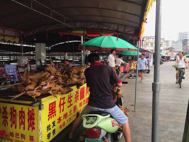 據報導,在中國,每年有超過一千萬隻狗和四百萬隻貓因肉食而被謀殺。這些狗大多數是從家庭偷來的家養寵物或流落街頭的流浪犬,並被送往臭名昭著的屠宰場。
