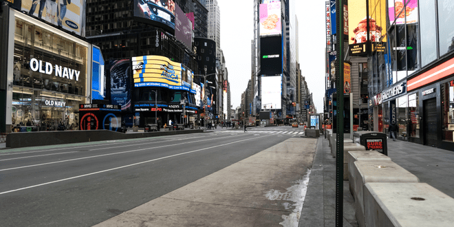 由於冠狀病毒的威脅,紐約市時代廣場倒空了(圖片由Shutterstock提供)