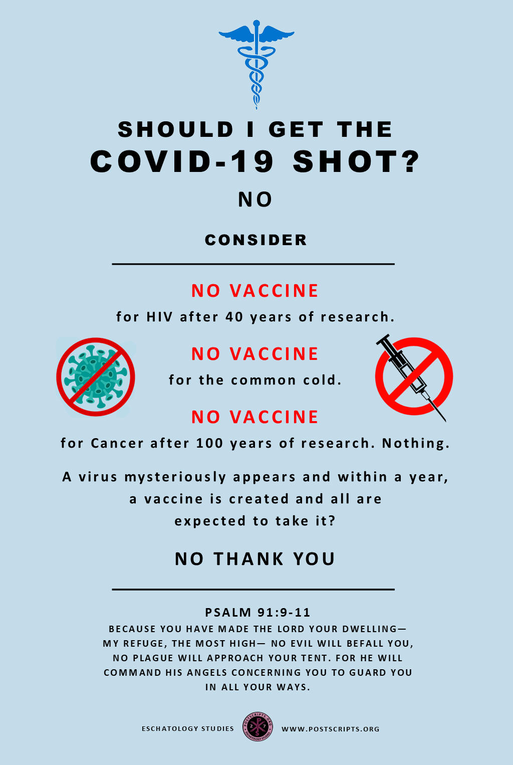 詩篇91:9-11 「耶和華是我的避難所;你已將至高者當你的居所,禍患必不臨到你,災害也不挨近你的帳棚。因他要為你吩咐他的使者,在你行的一切道路上保護你。」(中文和合本)