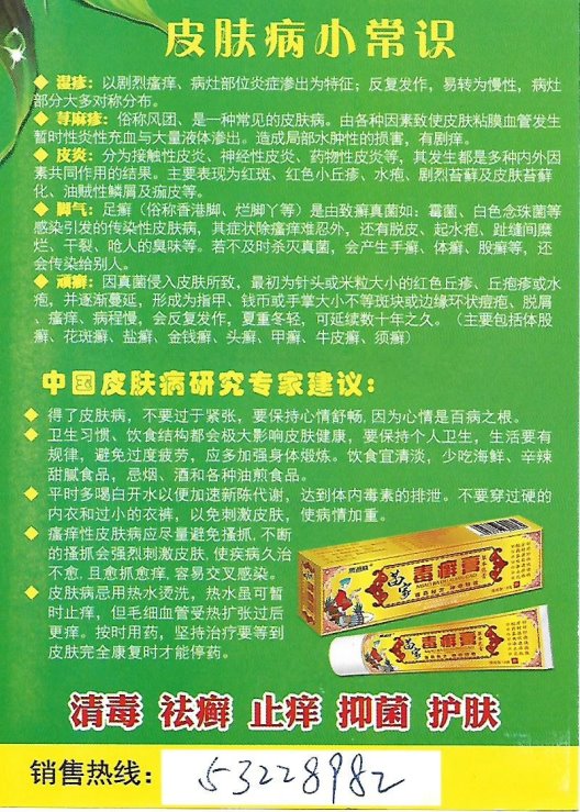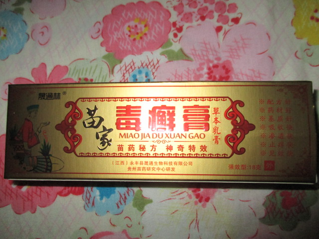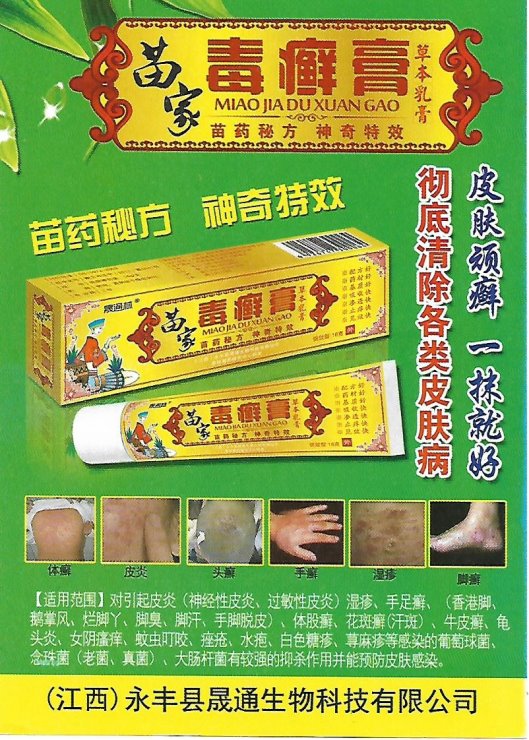 金蟲蟲在2016年8月尾於大圍市中心買了三支苗家毒癬膏,價錢為港幣100元。金蟲蟲認為沒有效的,那麼皮膚科醫生要失業麼?世事真的是很奇妙,金蟲蟲在塗了第一次以後,過了幾小時,痕癢完全消失,金蟲蟲十分高興,這就結束了幾年的皮癬煩惱。
